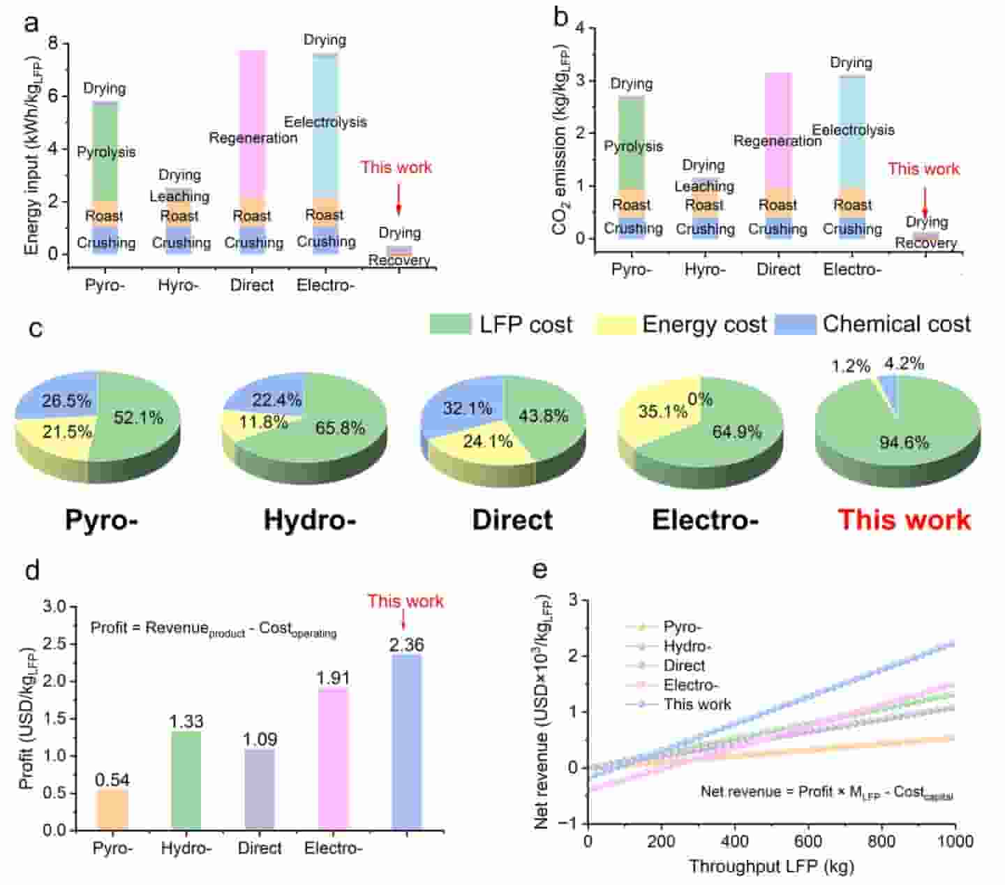 研究团队还对该工艺的全生命周期成本进行了测算,结果显示其成本仅为火法冶金技术的五分之一,且金属回收率超过98%。这一成果不仅为锂资源的回收提供了一种高效、环保且具有经济价值的全新解决方案,还为工业尾气的治理提供了新的思路。
