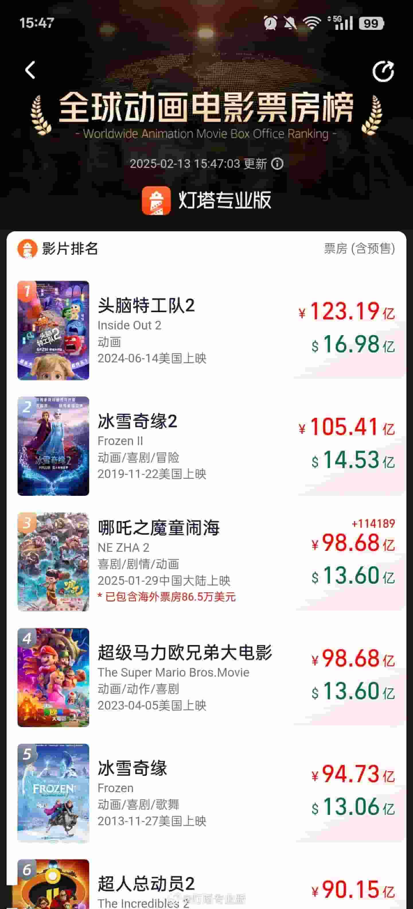 《哪吒之魔童闹海》全球票房飙升,超越《超级马力欧》跻身动画前三!