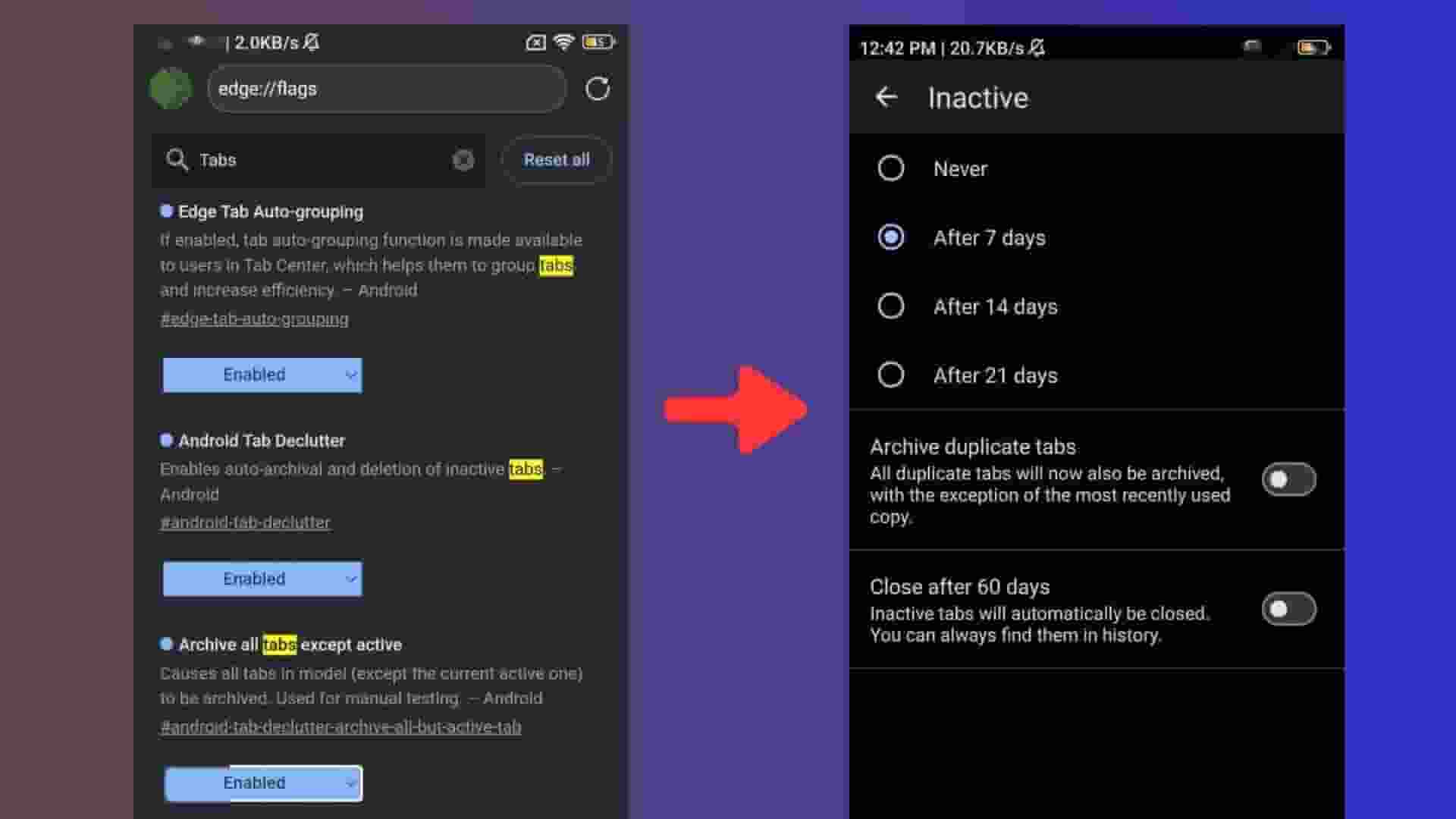 在标签页管理方面,安卓用户迎来了两大实验性功能:“Android Tab Declutter”和“Archive all tabs except active”。启用这两项功能后,用户可以在“常规设置”的“标签页”选项中找到全新的标签页管理工具。通过设置,用户可以灵活地将非活动标签页在7天、14天或21天后自动归档,同时,系统还会智能识别并归档重复标签页。用户还可以选择“60天后关闭”选项,自动清理所有已归档的标签页,让浏览器界面更加简洁有序。