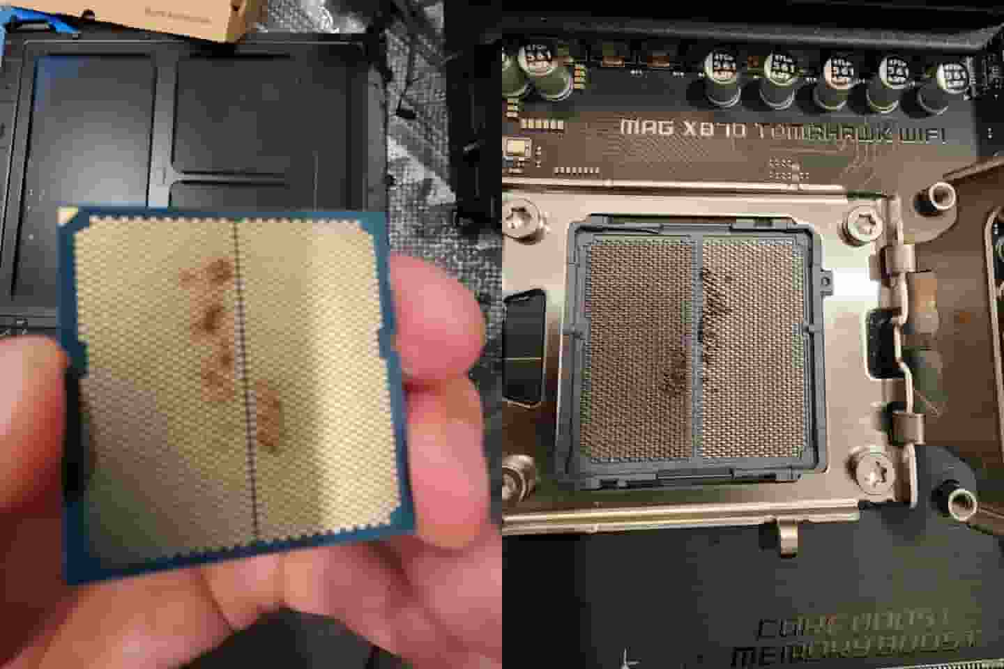 近日,一名Reddit用户发帖称,他遭遇了AMD锐龙7 9800X3D处理器与华擎X570E NOVA主板搭配使用时出现的硬件损坏问题。据该用户提供的照片显示,处理器和主板的AM5插座触点均有明显的烧毁痕迹,显然属于物理性损伤。