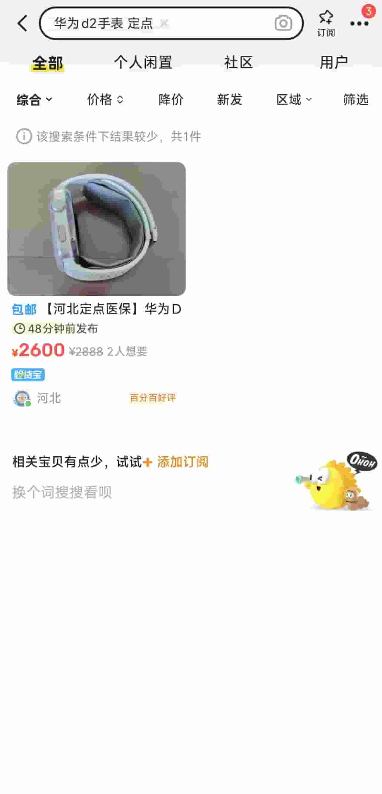新识研究所还发现,华为WATCH D2在市场上存在溢价现象。官方定价为2988元,但在部分支持医保购买的药店,其售价高达3088元或3188元。在二手平台闲鱼上,该款手表的售价多在2300-2700元之间,但标注为通过医保购买的商品数量有限。