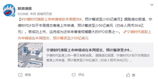 宁德时代本周或提港股上市申请,筹资目标50亿美元