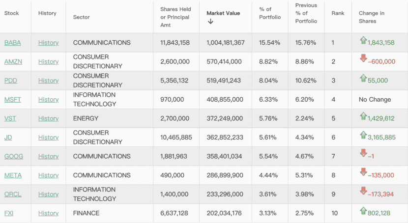 值得注意的是,截至2024年底,阿里巴巴已成为Appaloosa的前五大持仓之一,与亚马逊、拼多多、微软和VST共同构成了该基金的核心持仓组合。这一变化不仅反映了泰珀对中国科技巨头的看好,也体现了其投资策略的灵活性和前瞻性。