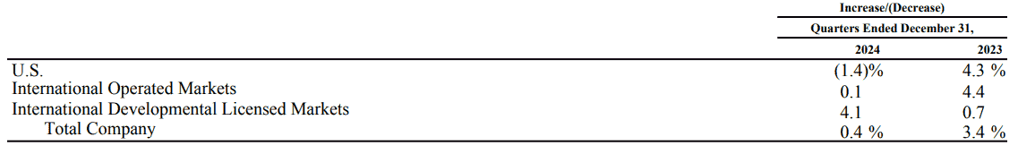 在财报发布后,麦当劳的股价在美股盘前交易中上涨了1.58%。然而,从具体业务表现来看,麦当劳的四季度同店销售额增长并不理想,增速大幅下降。数据显示,同店销售额同比增长0.4%,远低于上年同期的3.4%增幅,但略高于市场预期的-0.93%降幅。