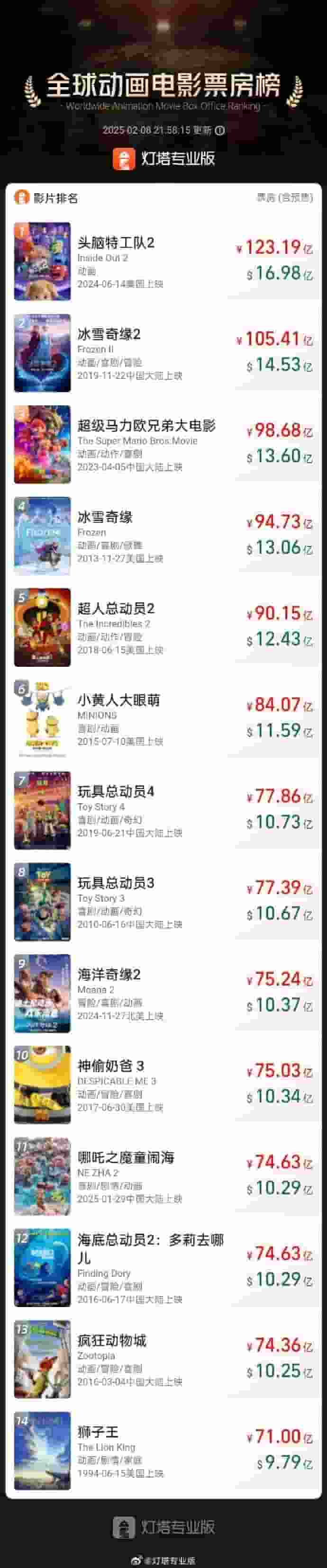 《哪吒之魔童闹海》破74亿,成全球影史票房前50唯一非好莱坞作品!