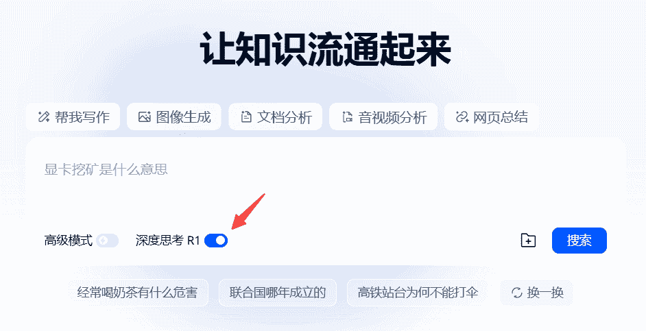 现在,用户可以在“天工AI”的PC端网页上无缝使用DeepSeek的联网搜索功能,实时获取最新信息。这一改进大大提升了AI在复杂场景下的推理和思考能力,无论是学术研究、商业分析、文章写作,还是日常问题搜索和解答,用户都能通过“天工AI”获得更加精准、全面的结果。用户只需在界面上勾选“深度思考 R1”按钮,即可享受联网搜索带来的便利。