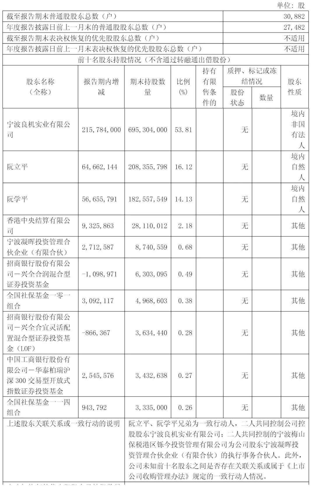 股权结构方面,公牛集团的股权相对集中。截至2025年3月31日,宁波良机实业有限公司持有公司53.81%的股份,为公司第一大股东。而阮立平和阮学平兄弟则分别持有16.12%和14.13%的股份,两人合计持有公司超过84%的股份,形成了对公司的绝对控制。香港中央结算有限公司、宁波凝晖投资管理合伙企业等也持有公司一定比例的股份。
