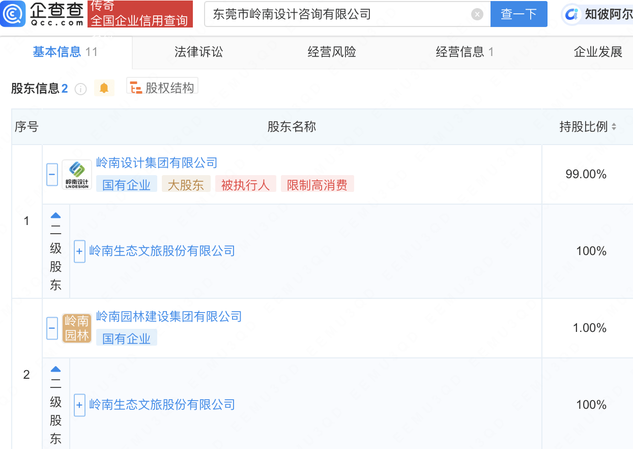 企查查APP显示,近日,东莞市岭南设计咨询有限公司成立,法定代表人为陈宗畴,注册资本50万元,经营范围包含:规划设计管理;图文设计制作;专业设计服务;咨询策划服务;工程管理服务。企查查股权穿透显示,该公司由岭南股份(002717)间接全资持股。