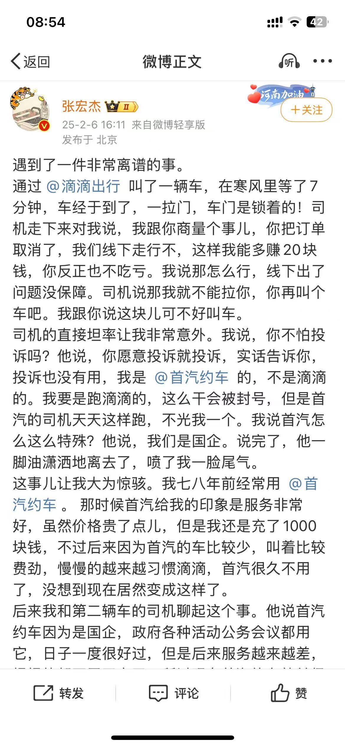 张宏杰的这一遭遇,不仅揭示了网约车行业中存在的某些不规范行为,也引发了公众对于网约车服务质量和监管力度的再次审视。
