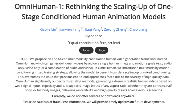 为了防止这项技术被滥用,字节跳动技术团队在OmniHuman的技术主页上特别注明,该模型将不会对外提供下载。这一举措不仅体现了字节跳动对技术安全的重视,也彰显了其作为科技企业的社会责任感。