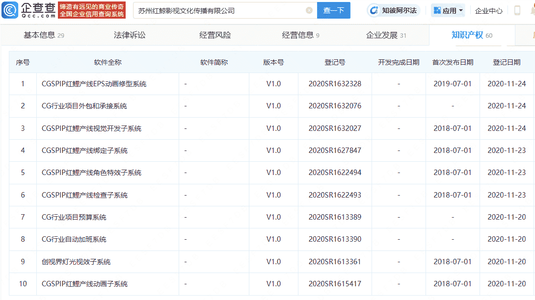 深入探究发现,红鲤动画与上海红鲤文化传播有限公司紧密相连。据企查查APP数据显示,上海红鲤文化由光线传媒旗下的北京彩条屋科技有限公司控股,持股比例高达约66%。上海红鲤文化还积极对外拓展,投资了苏州红鲸影视文化传播有限公司和苏州红鲲数字科技有限公司两家企业。