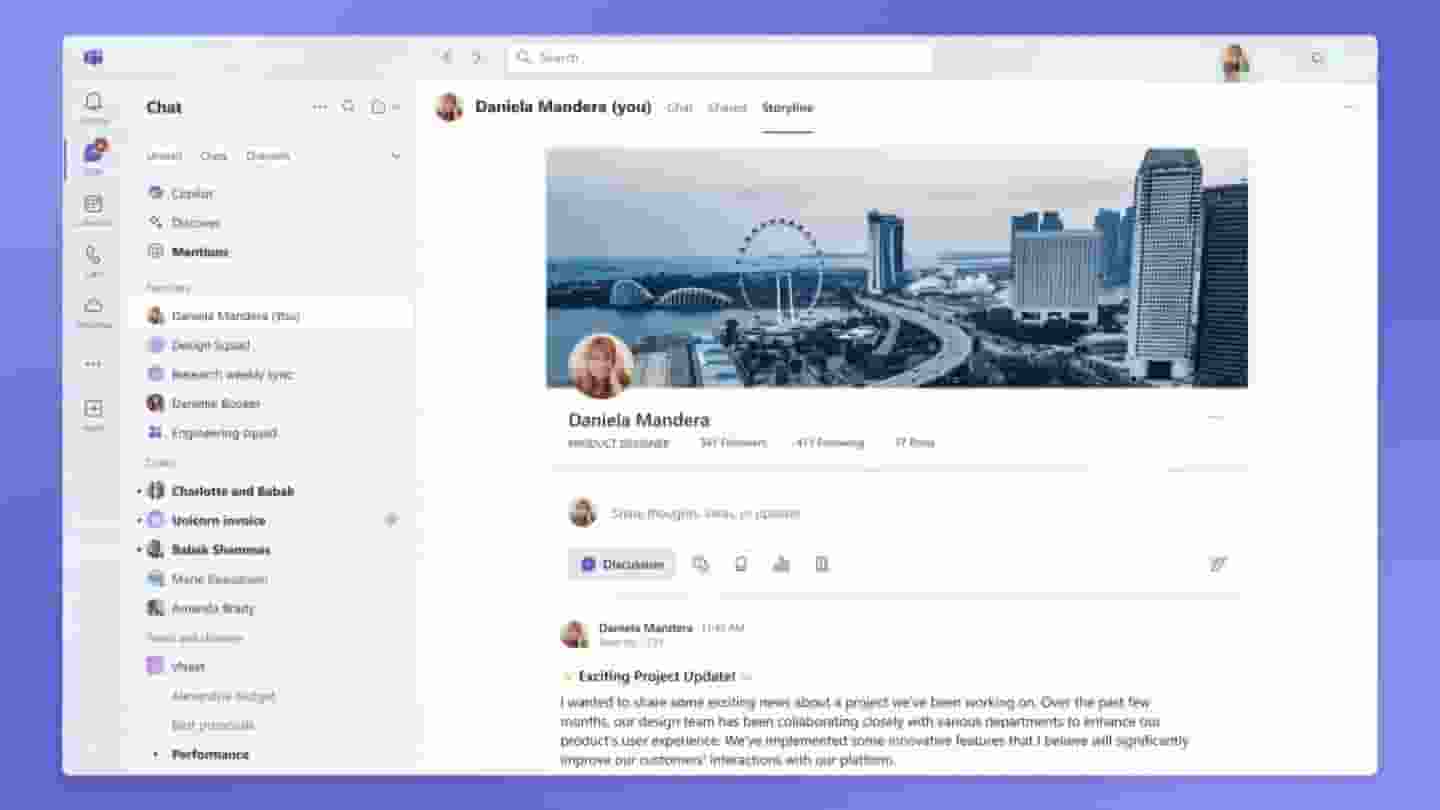 据了解,Storyline功能基于Viva Engage算法精心打造,与Teams应用实现了深度整合。微软期望通过这一功能,为用户提供一个更加便捷、高效的分享与获取信息的平台。用户不仅可以自由浏览和评论,还能像在社交媒体上关注明星一样,关注自己感兴趣的同事,从而更加紧密地连接在一起。