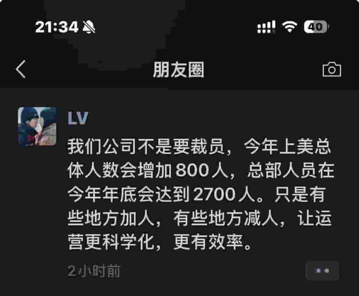 然而,针对这一裁员风波,吕义雄很快在个人朋友圈及公司工作群内发文回应。他表示,公司并未计划进行真正的裁员,反而今年上美股份的总体员工人数将增加800人,预计年底总部人员将达到2700人。吕义雄解释说,公司的调整只是针对特定部门的人员增减,旨在实现运营的科学化和效率提升。