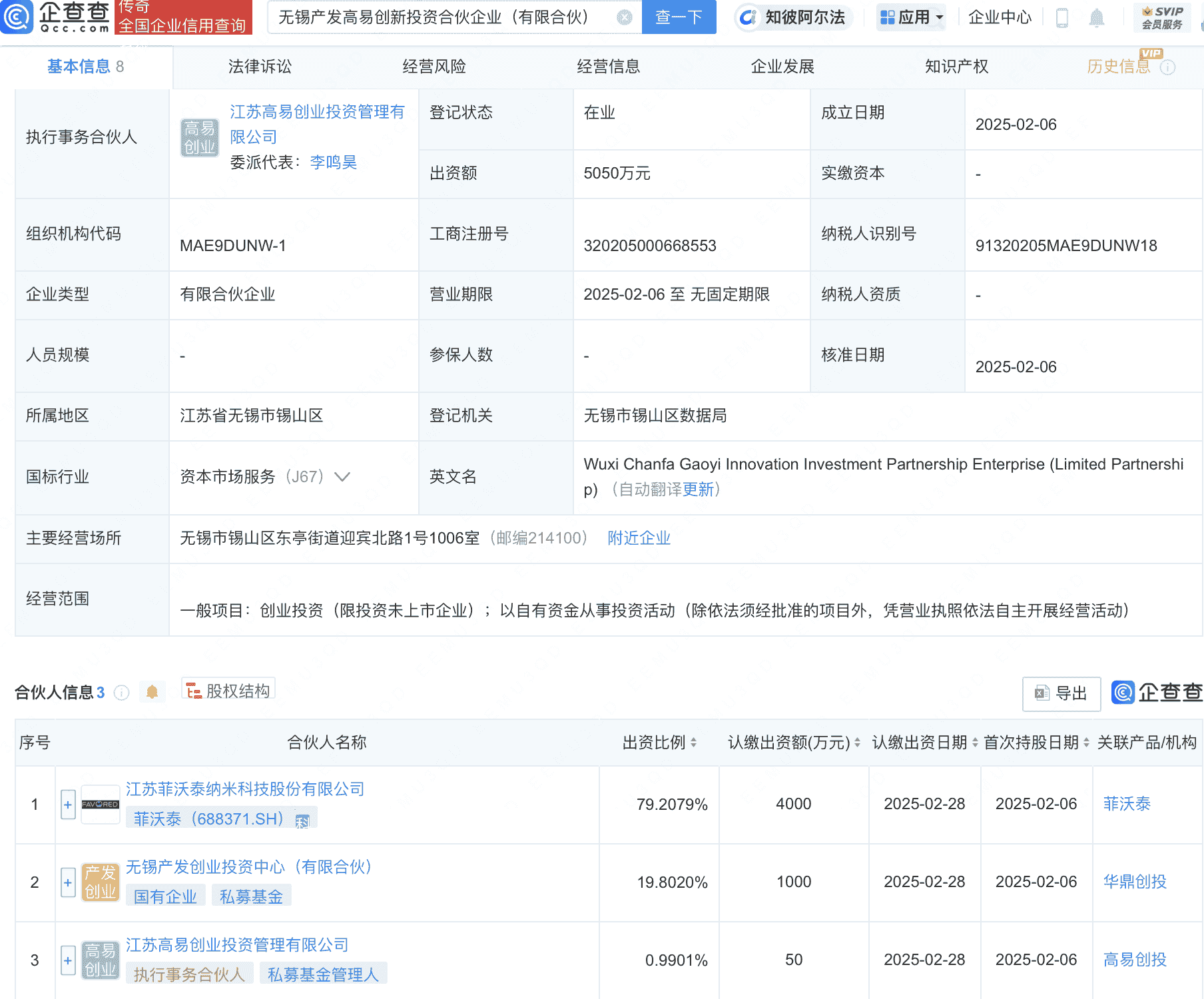 据企查查APP深度解析,无锡产发高易创新投资合伙企业的股权结构颇为引人注目,其中菲沃泰(股票代码:688371)等知名企业均为其重要股东。这一合作不仅彰显了各方对创新投资领域的共同看好,也预示着未来可能有一系列新的投资动作和战略部署。