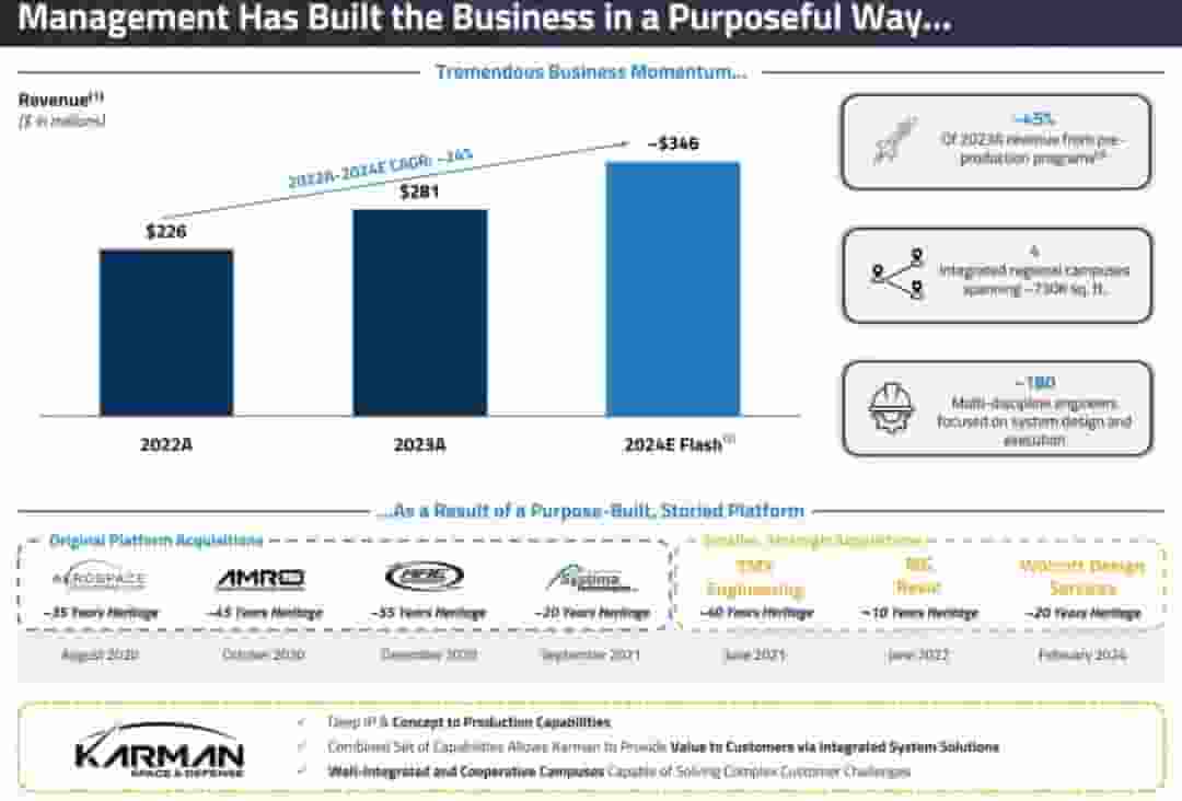 具体而言,Karman在2022年实现营业收入2.26亿美元,2023年则增长至2.81亿美元;毛利方面,从2022年的8095万美元增加至2023年的1.06亿美元;净利润则由2022年的亏损1410万美元转为2023年的盈利435.94万美元。进入2024年,公司继续保持强劲增长势头,前9个月营收已达2.54亿美元,同比增长24.7%,毛利和净利润也分别提升至9738万美元和1102万美元。