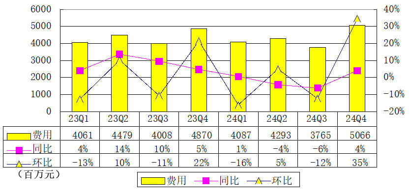 在毛利方面,唯品会第四季度实现了76亿元的毛利,同比下降7.3%,毛利率为23%,虽然较上年同期略有下降,但依旧保持在较高水平。与此同时,唯品会第四季度的费用为51亿元,同比增长4%,这主要是由于公司在市场营销和研发方面的投入增加。