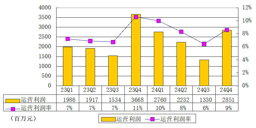 尽管面临一定的压力,唯品会第四季度的运营利润依然达到了29亿元,同比下降21.6%,运营利润率为8.6%。经调整后的运营利润为34亿元,显示出公司在调整业务结构和提升运营效率方面的努力。