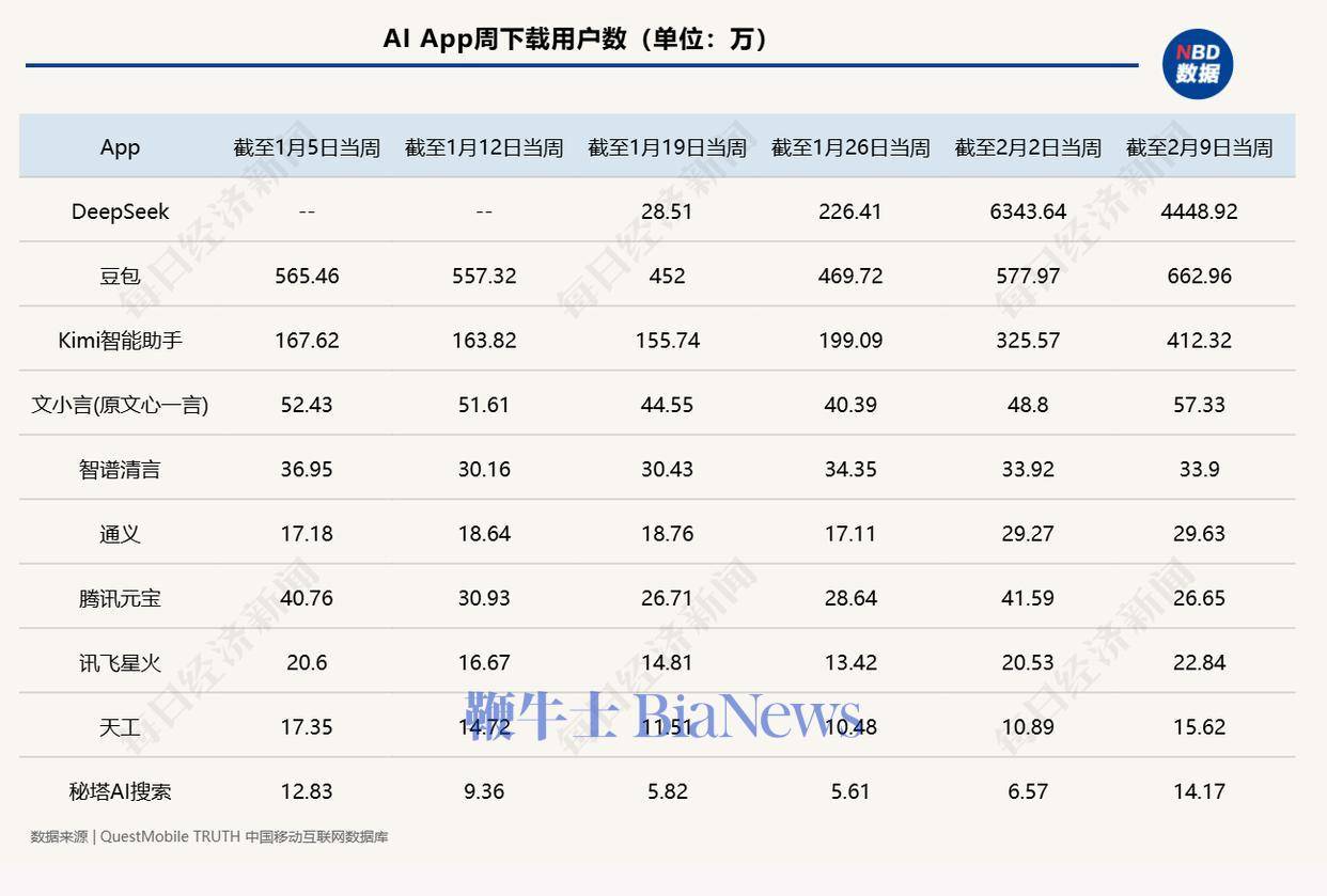DeepSeek下载量破亿,周活跃用户近亿,AI应用竞争白热化