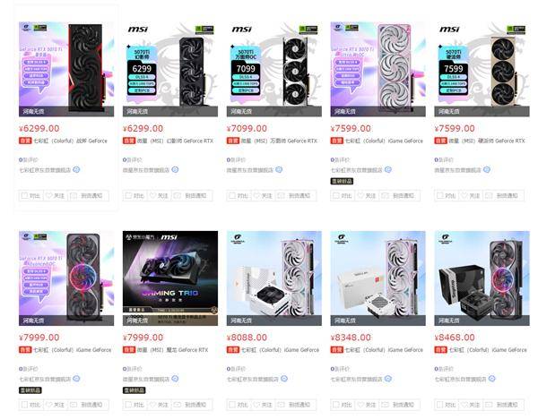 在价格方面,虽然市场上存在6299元原价的选项,但选择非常有限,仅包括七彩虹战斧豪华版和微星幻影师版两款。其余显卡的价格则直接跃升至7000元以上,部分甚至超过了RTX 5080的建议零售价8299元,最高价格接近9000元。
