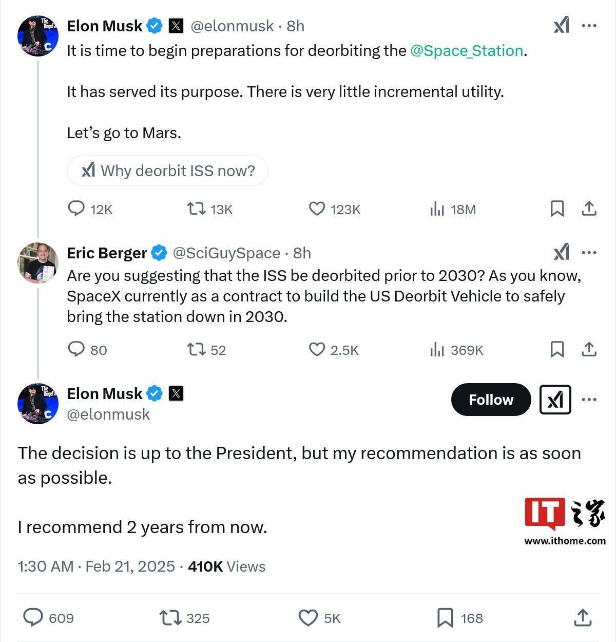 埃隆·马斯克近日在X平台上发表言论,提议应着手准备国际空间站(ISS)的退役计划,并希望能在两年内实现这一目标。他提出,国际空间站已圆满完成了其初始设计使命,继续运营所能带来的额外效益相对有限,因此应将资源集中投入到更具挑战性的载人火星登陆任务上。