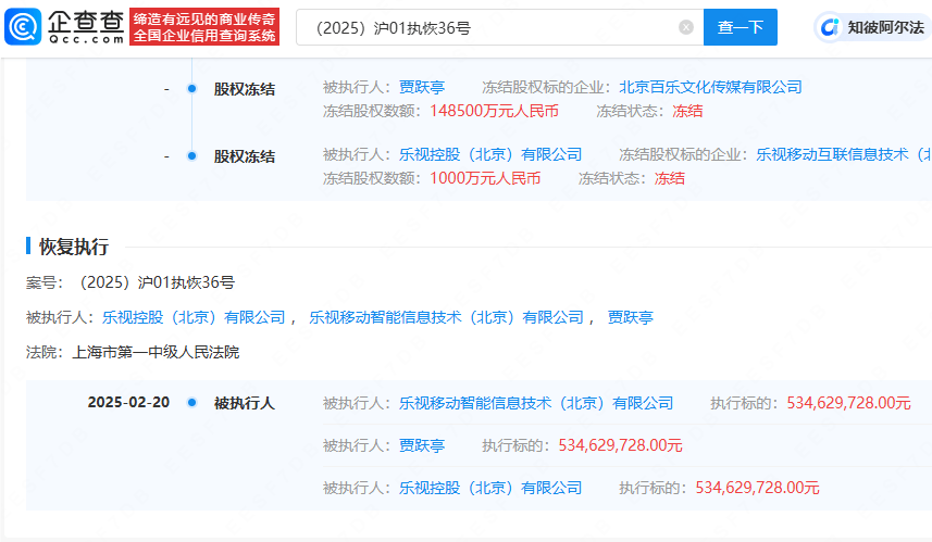 近期,据企查查APP最新披露,乐视控股(北京)有限公司及其关联公司乐视移动智能信息技术(北京)有限公司,连同其法定代表人贾跃亭,被上海市第一中级人民法院重新启动了一项执行程序,涉及金额高达约5.34亿元人民币。这一行动源于一起企业间的借贷纠纷案件。