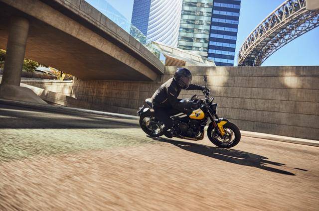 在动力方面,Trident 660的三缸发动机依然表现出色。其90%以上的峰值扭矩在3600-9750r/min之间输出,峰值扭矩爆发在6250r/min,相较于之前提早了近22%。这种动力输出特性使得Trident 660在低速巡航和高速疾驰时都能表现出色。同时,优化的变速箱响应和凯旋换档辅助系统的无缝衔接,让加速过程更加顺畅且富有激情。