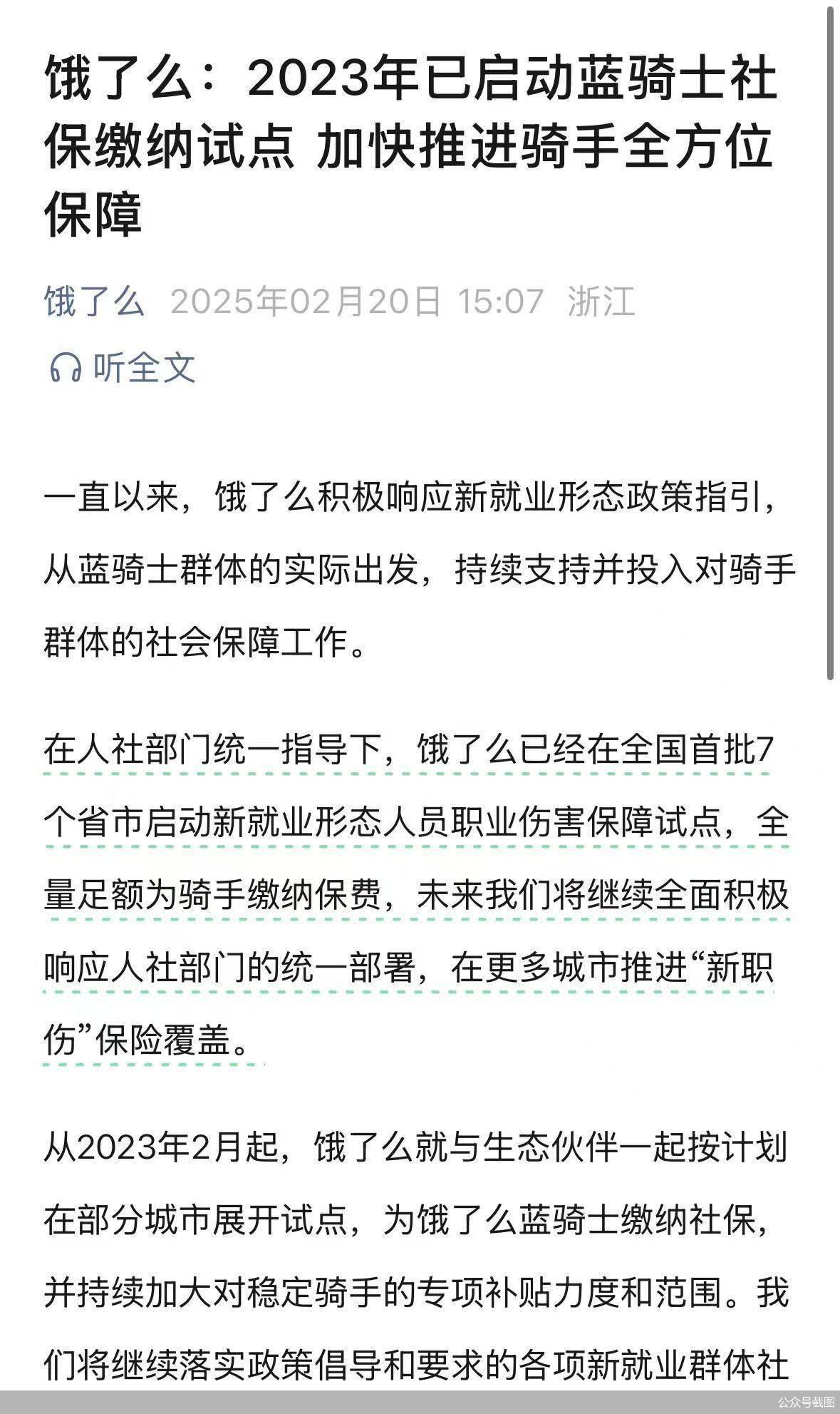 饿了么2023启动新就业形态人员社保缴纳试点,全力保障蓝骑士权益