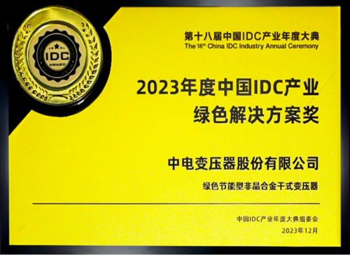 中电变压器股份有限公司作为IDC行业电力解决方案服务伙伴,参编CDCC (中国数据中心工作组) 、DCRE (数据中心绿色能源技术联盟)《数据中心预制式模块化变电站技术白皮书》;参编中国建筑节能协会《低碳数据中心设计导则》;获得GDC绿能数据中心产业联盟推荐“绿色数据中心创新产品、创新解决方案”;荣获第十八届中国IDC产业年度大典 “2023年度中国IDC产业绿色解决方案奖”。