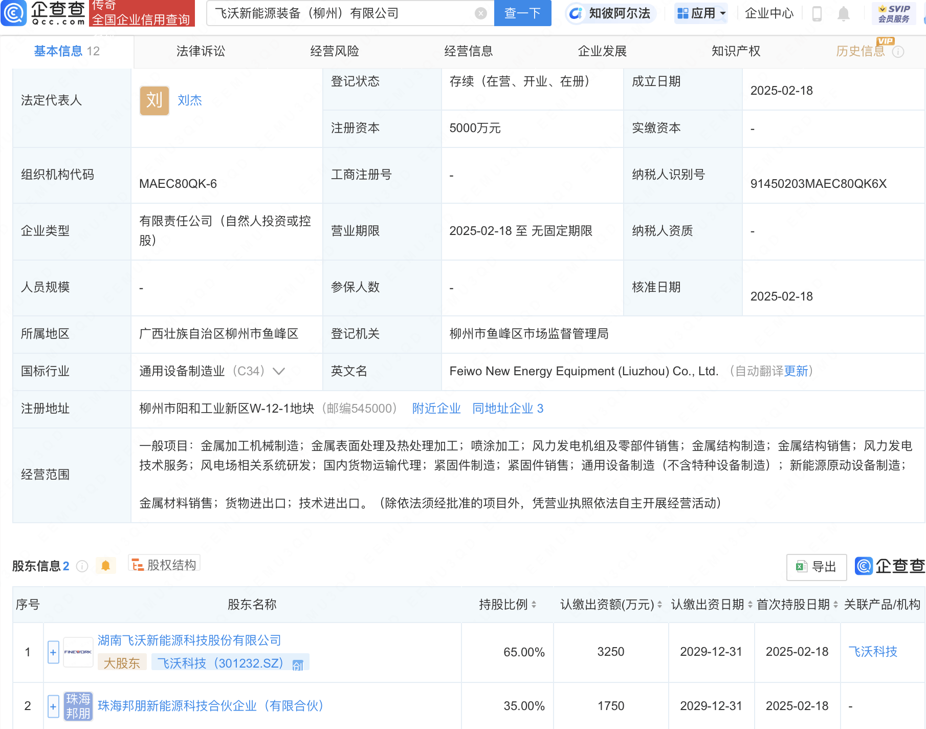 通过企查查的股权穿透数据显示,飞沃新能源装备(柳州)有限公司的背后有着强大的股东支持,其中包括了飞沃科技(股票代码:301232)等知名企业的共同持股。这样的股东结构,不仅为公司的发展提供了坚实的资金支持,更为其在新能源市场的竞争中增添了不少底气。