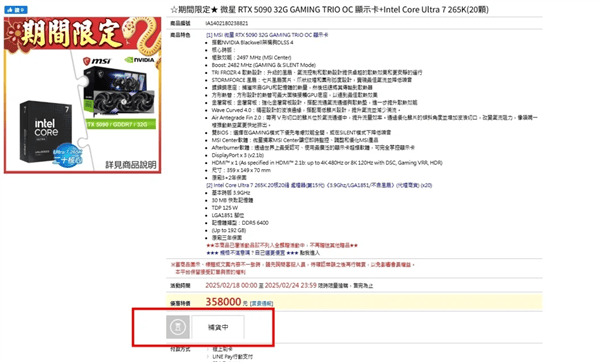 而近日,中国台湾的一家3C零售商AUTOBUY又推出了一个令人瞠目的销售策略。该商家在其官方网站上推出了一款“限时特惠”的RTX 5090超级捆绑套餐,套餐内容之丰富令人咋舌——一张微星RTX 5090 32G GAMING TRIO OC显卡搭配了整整20颗Intel Core Ultra 7 265K处理器。