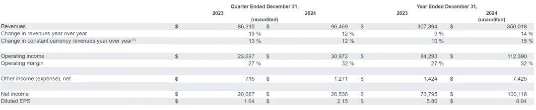 具体来看,Alphabet在2024年的总收入达到了3500亿美元,与上一年度的3074亿美元相比,增幅达到了14%。这一成绩彰显了公司在全球经济波动中依然保持了稳健的发展态势。