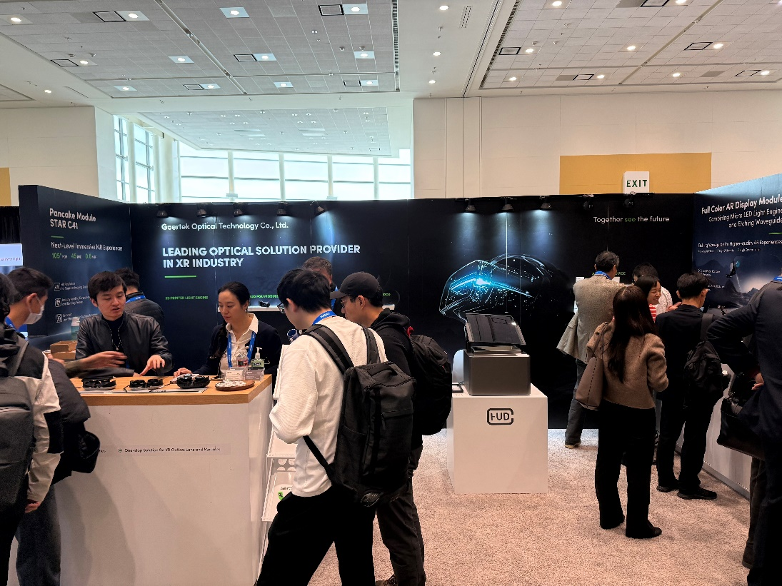 今年歌尔光学首次出席SPIE AR | VR | MR,现场展出了涵盖VR、AR、智能座舱在内的一系列光学解决方案。展会现场,歌尔光学展区人头攒动,其凭借诸多革新的解决方案以及出色的演示效果收获了诸多在场嘉宾的体验咨询以及合作洽谈。