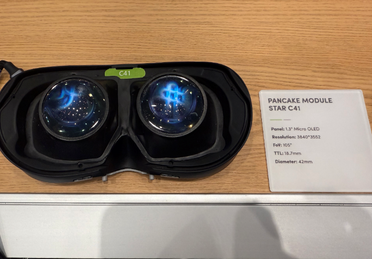 除Star G-E1以外,歌尔光学还展示了单光机双目衍射光波导AR显示模组、多款4K Pancake VR光学模组、AR-HUD等产品。