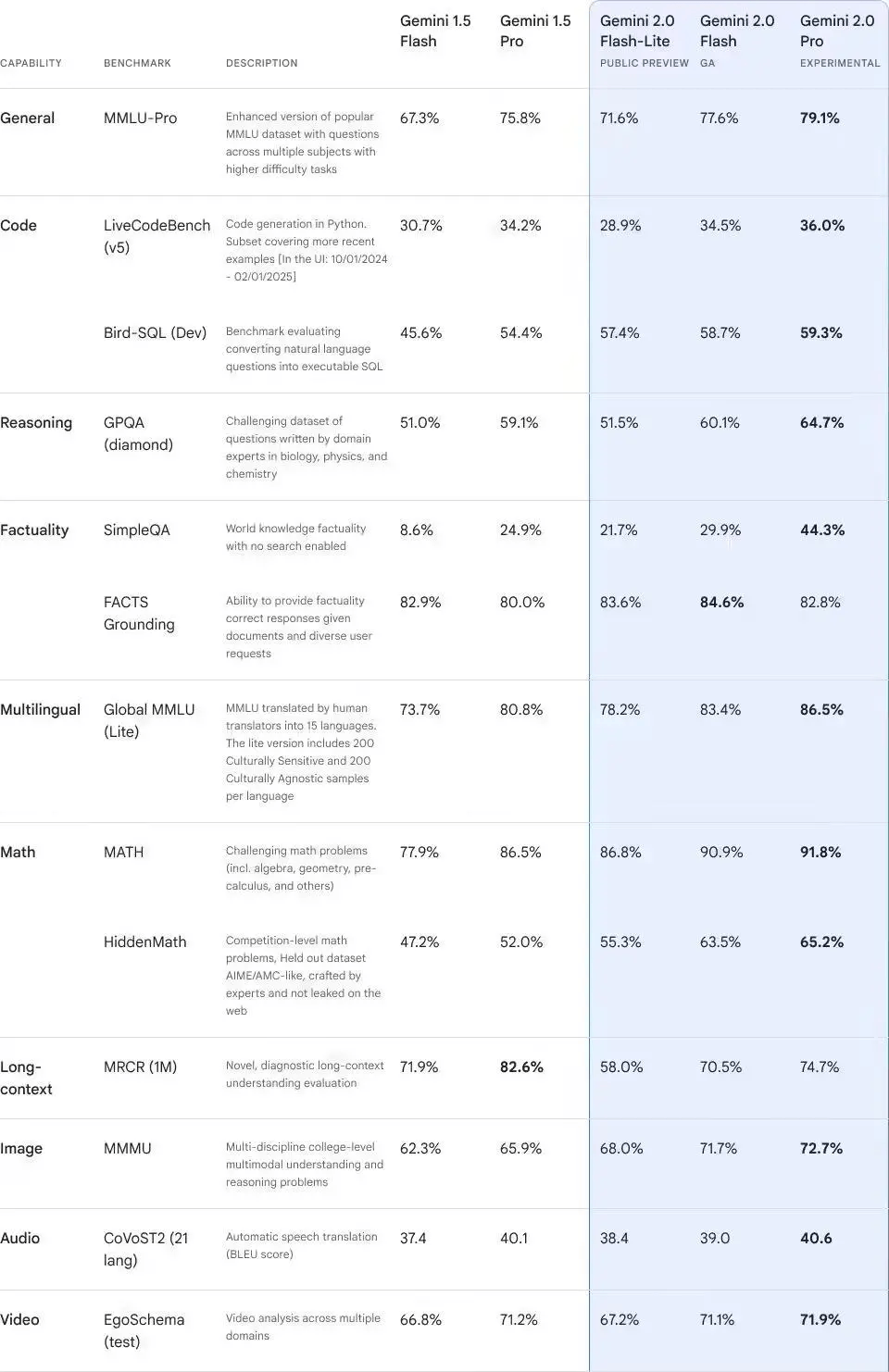 除了上述两款模型外,谷歌还推出了Gemini 2.0 Pro实验版本。该模型以其卓越的编程性能和复杂提示词处理能力而著称,拥有高达200万tokens的上下文窗口,能够全面分析和理解海量信息。它还支持调用Google搜索和代码执行等工具,为开发者提供了更加强大的支持。现在,开发者可以在Google AI Studio和Vertex AI中体验这一实验版模型,而Gemini的高级用户则可以在桌面和移动端进行访问。