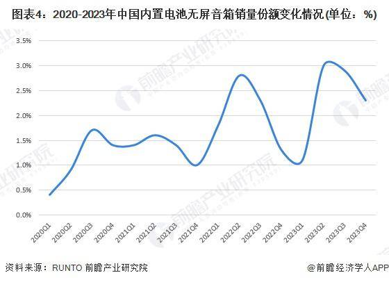 内置电池无屏音箱的销量份额也呈现出波动增长的趋势。虽然早期增速较为平缓,但近年来增长幅度有所提升,尤其是在二、三季度表现尤为突出。然而,整体来看,内置电池无屏音箱的增速仍较为温和,需求增长空间尚待进一步挖掘。这表明,市场在满足消费者基本需求的同时,仍需不断创新和升级,以满足消费者日益多样化的需求。