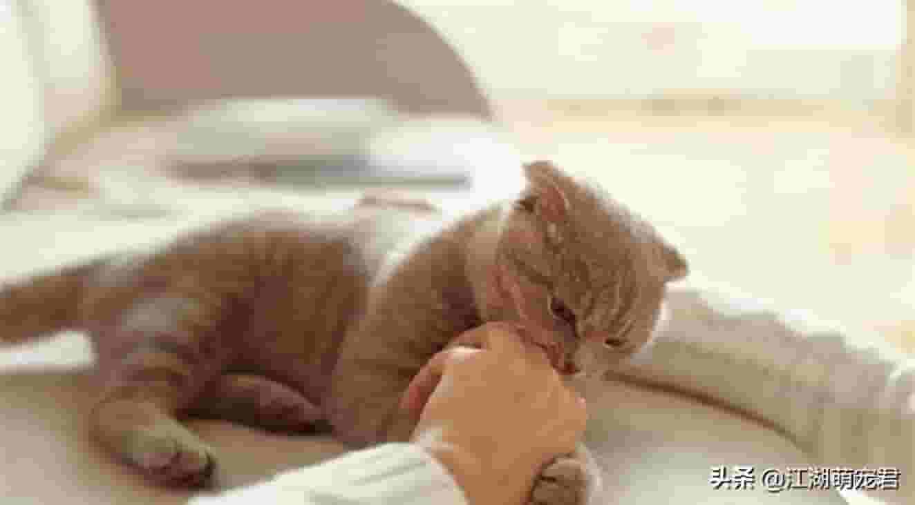 猫准备咬人的时候,主人要发出和平时不一样的声音,音调要长,样子要痛苦,这样猫才能认出来。同时拍拍猫咪的额头,让它知道这种行为是不对的。不管咬你的胳膊还是腿,记得不要左右摇摆,不然猫会以为你在和它玩游戏。