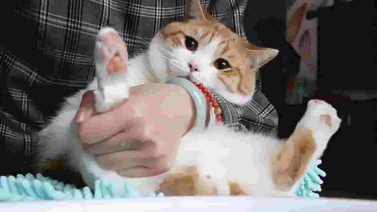 家里再干净也是有灰尘的,猫咪又不穿鞋,所以上床前最好给它擦擦爪子,这样更干净哦!如果猫咪不愿意配合,可以搭配零食一起
