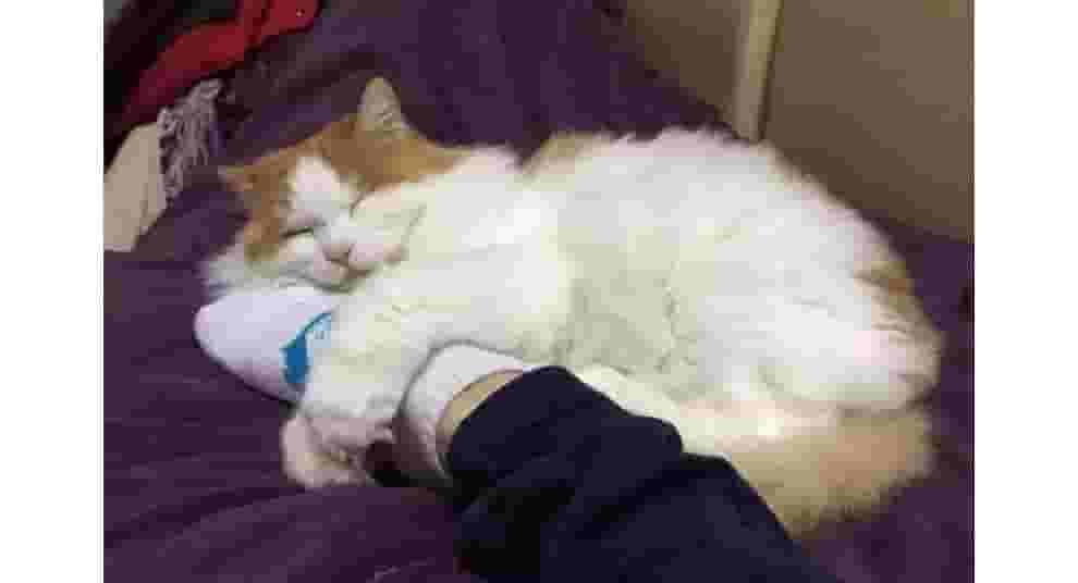 4、猫咪喜欢睡在你身边,还可能是因为你睡相比较好,不是因为爱你。