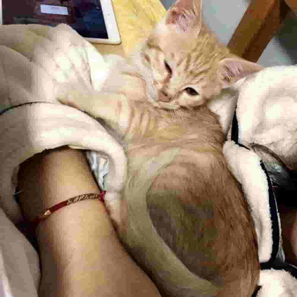 当你在玩手机,或者躺下来看电视的时候,猫咪也会找个比较舒服的姿势和位置睡起来。
