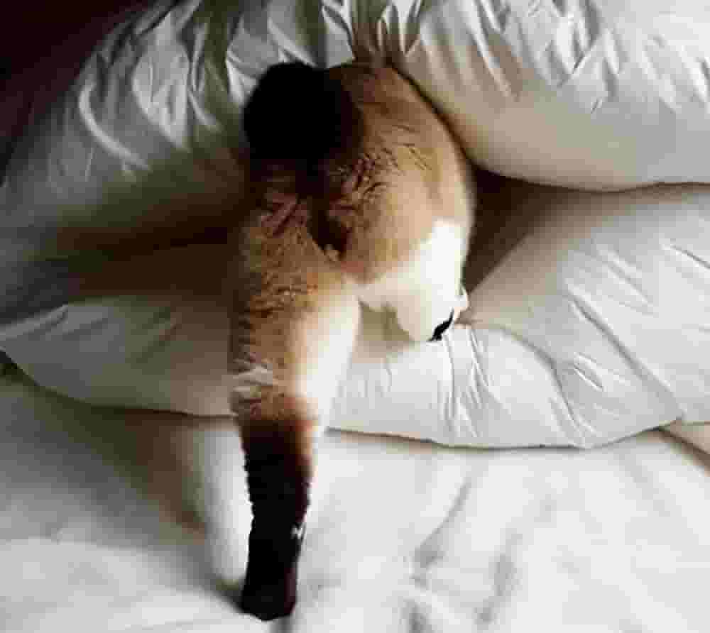 其实,到了冬天气温下降,猫咪即便有毛发也怕冷,它知道主人很暖和,所以要和你一起睡觉。