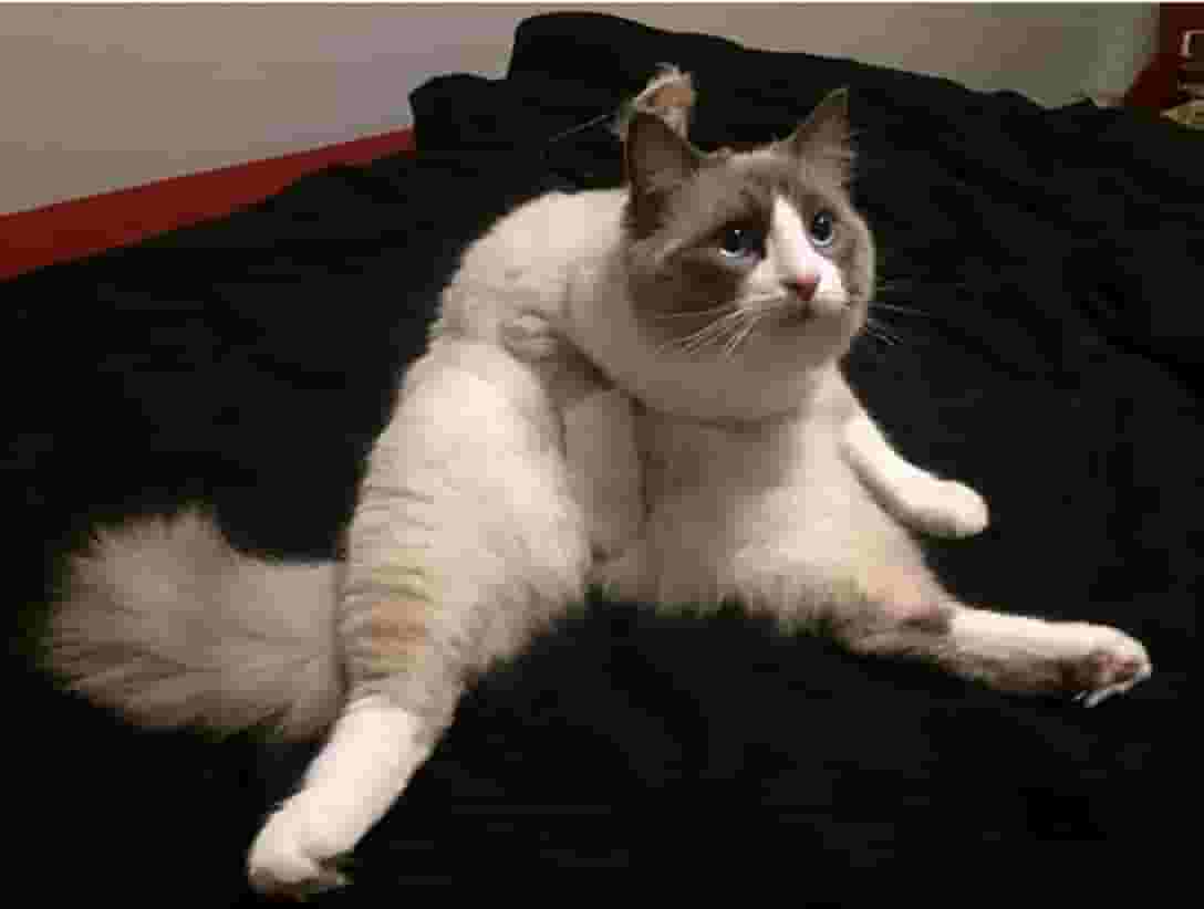 猫咪也是很贪吃的,要是它想要东西吃的时候,它也会躺在你身上,看着你吃东西,它这样做就是想你给点它吃。
