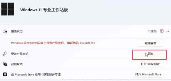 3、然后展开“激活状态”,并点击“更改产品密钥”右侧的“更改”