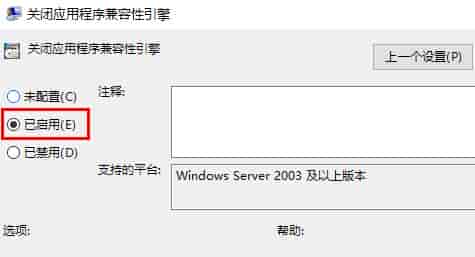 3、进入后,点击“应用程序兼容性”在右侧选择“关闭应用程序兼容性引擎”。