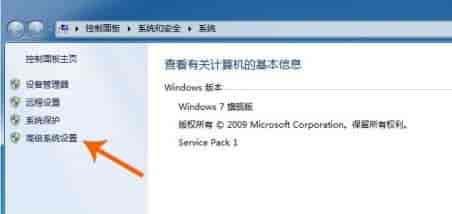 2、点击左边的“高级系统设置”