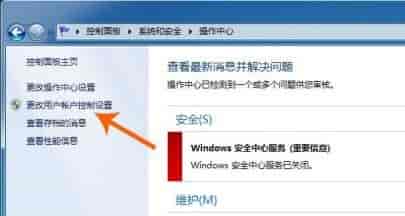 3、然后再在左侧选择“更改用户账户控制设置”