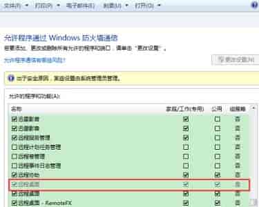 7、接着我们打开防火墙,查看远程桌面是否可以使用,如果图示位置是像图中一样暗的。还需要进行如下更改。