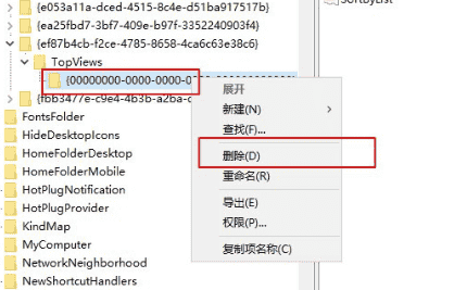 3、在{00000000-0000-0000-0000-000000000000}上单击右键,选择“删除”。