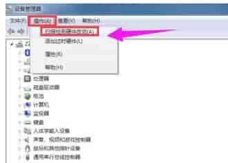 7、点击设备管理器菜单的操作--扫描硬件改动,系统一般会用通用驱动重新驱动网卡,安装完成后,重新启动计算机!应该可以了!