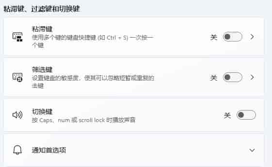 5、在其中就可以修改键盘设置了,如果不知道怎么设置,那么全部关闭就可以。