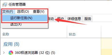 2、然后在“任务管理器”左上角点击“文件”,选择“运行新任务”。